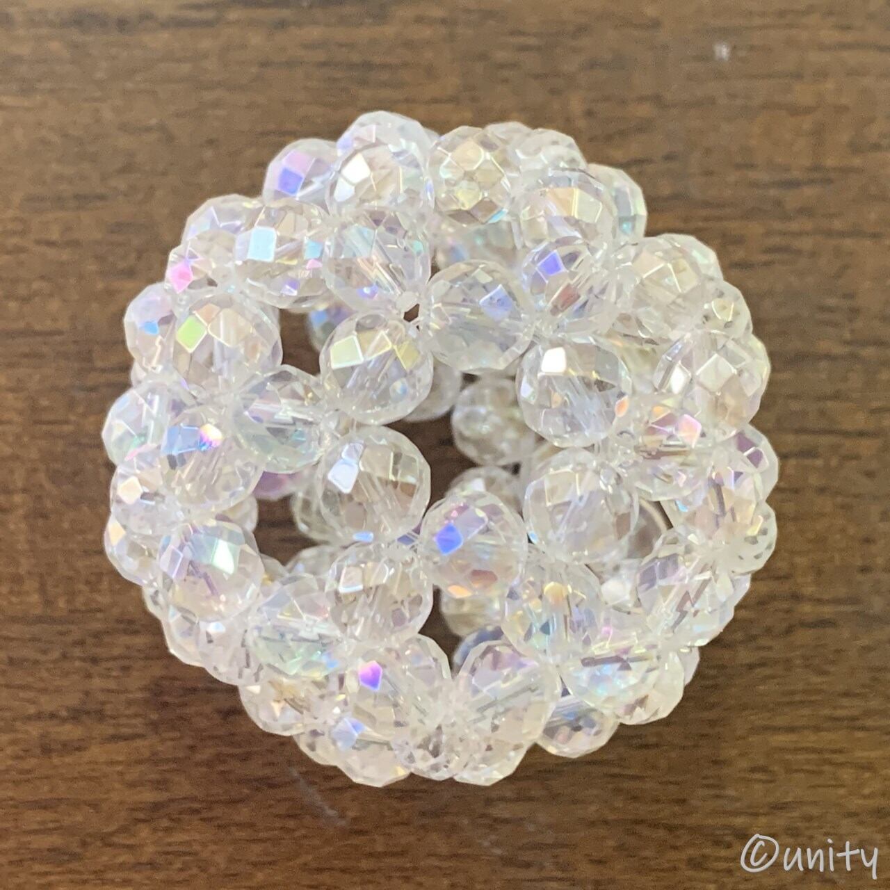 64面カットのため、虹色の光の反射がとても美しく、サンキャッチャーのように周囲に虹色オーラを放ちます。